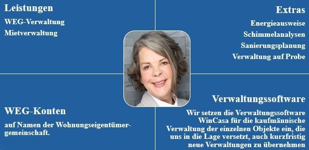 Seit 2002 bin ich, Mareile Humburg, Ihre kompetente Partnerin in allen Belangen der Haus-verwaltung.
